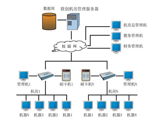 一般針對大型大學(xué)和圖書(shū)館使用,該系統通過(guò)卡片和學(xué)生帳號、密碼來(lái)實(shí)現雙重安全認證??墒褂脤W(xué)?,F有的卡片(各類(lèi)條碼卡、磁條卡、射頻IC、ID卡)。用戶(hù)可選擇指定機器、指定機房、無(wú)限制等多種機器分配模式來(lái)合理分配機器資源,引導學(xué)生上機;支持自費刷卡,教學(xué)上機不用刷卡(避免上課擁堵)的方式;支持統一下機無(wú)需刷卡功能。