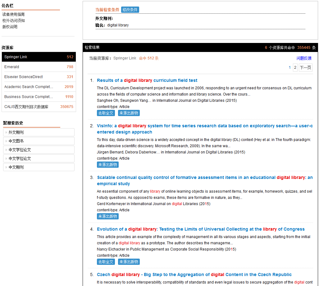 提供強大的一站式統一檢索,不僅可整合知名廠(chǎng)商的數據庫,還可以整合圖書(shū)館的館藏目錄、自建特色資源以及一些廠(chǎng)商提供的本地鏡像庫。聚搜索功能將圖書(shū)館重要常用的核心資源庫整合在特定專(zhuān)題類(lèi)目中,師生直接選擇相應類(lèi)目進(jìn)行多字段組合檢索,可以精確定位特定文獻,同時(shí)支持OPENURL/DOI查找。通過(guò)輕量級的聚類(lèi)檢索架構,將圖書(shū)館核心的20%的電子資源庫整合起來(lái)統一檢索,滿(mǎn)足讀者80%的文獻檢索需求,服務(wù)將更加精準,更加高效。