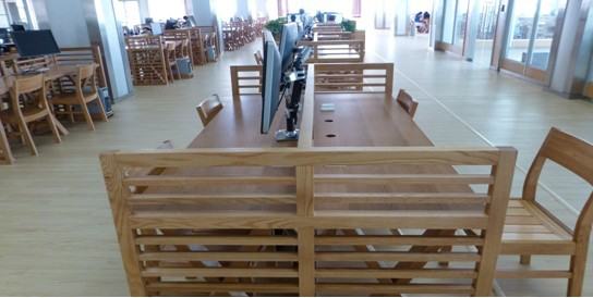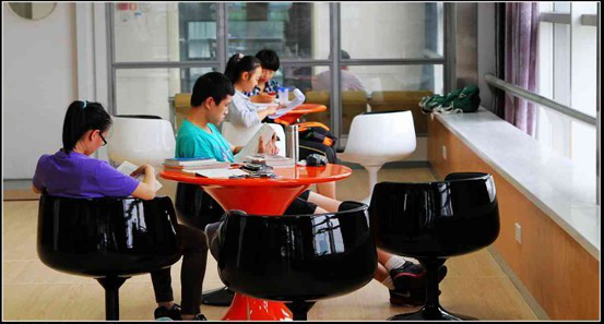 該空間主要是為讀者提供一個(gè)紙質(zhì)圖書(shū)或者自帶筆記本電腦的閱覽區域和上機區域,在閱覽桌上設置相應的電源插座和USB插座等相關(guān)設備。