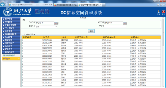 根據系統設置的收費規則,系統在設備外借和歸還刷卡時(shí),自動(dòng)進(jìn)行押金收還、租金或罰金的收取操作。設備租借所需款項自動(dòng)與一卡通進(jìn)行結算。